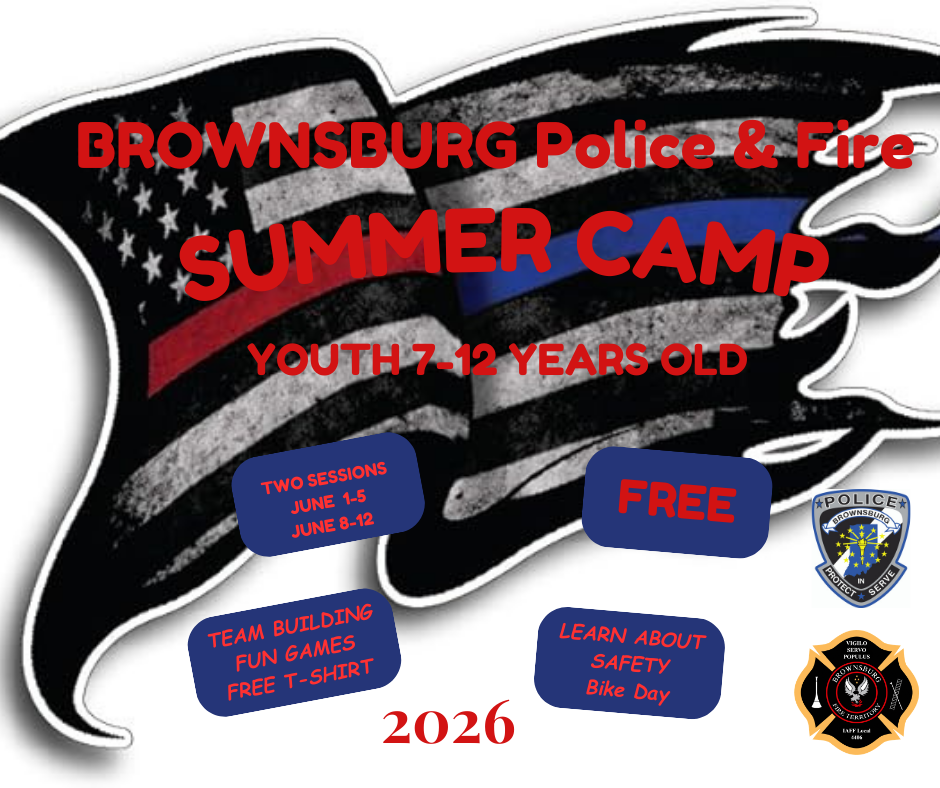The Brownsburg Police Department, in conjunction with the Brownsburg Parks Department and Brownsburg Fire Territory, offers an annual Youth Summer Camp for children ages 7 to 12. With generous donations from local citizens this camp is offered free of charge.